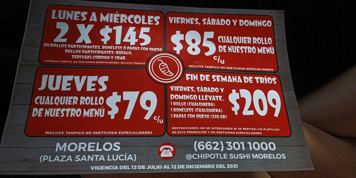 Located at Bulevar José María Morelos 245 in Hermosillo, Chipotle Sushi brings a vibrant twist to traditional sushi with bold flavors that excite the palate. This unique eatery seamlessly combines fresh ingredients with the spirited essence of chipotle, offering an array of dishes that cater to diverse tastes.